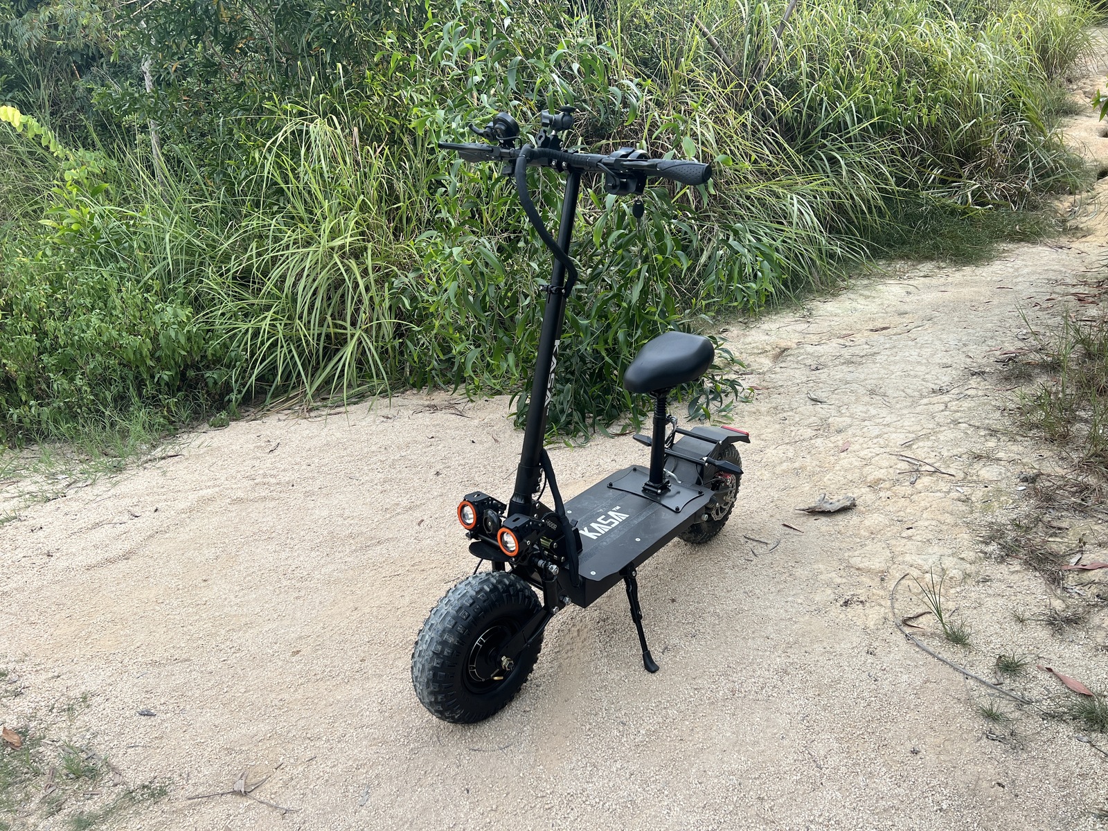 The KASA S5600R is next-level fun, on road or off, doesn't matter this thing gets up and goes more than I thought possible for a scooter. The Scooter is a high-speed and powerful electric scooter designed for the ultimate on or off-road experience. Its motorcycle-grade inverted hydraulic front and rear shock absorbers enable ride in any terrain whether it’s wet slippery conditions or uphill climbing rocky surfaces.