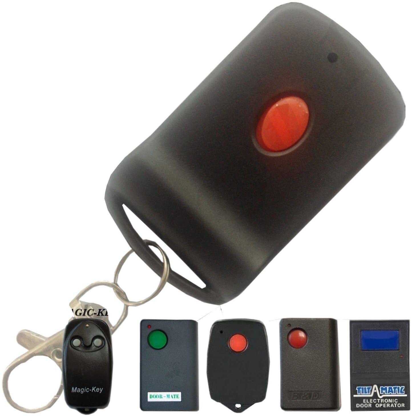 1 off TILT A MATIC Replacement garage door remote with metal key chain, batteries and programming instructions.